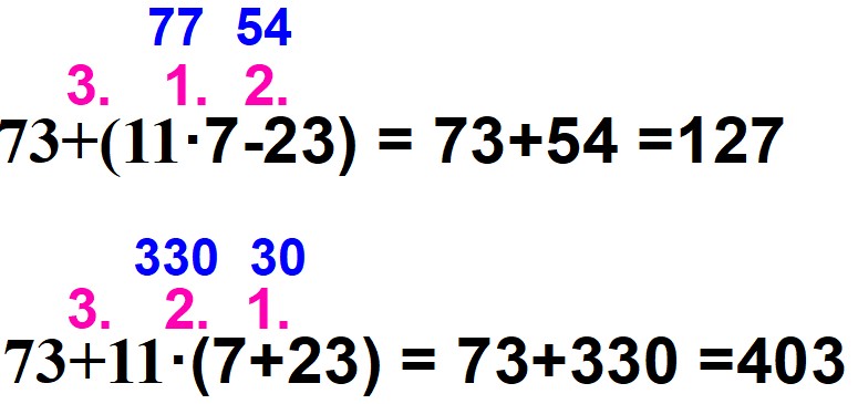 A zárójel áthelyezése más-más eredményhez vezethet.